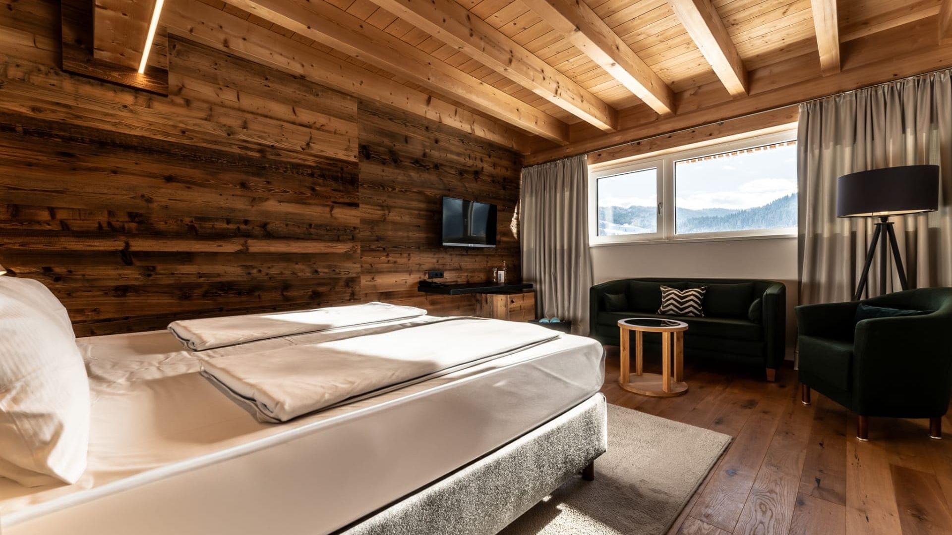 Einmal tief durchatmen und schon bist Du in unserem „Bio-Naturkraftzimmer Edelweiß Deluxe“ in Deinem Wohlfühlurlaub angekommen. Naturdesignmöbeln, Naturholzboden und hochwertige Materialien aus der Region laden in der wohligen Wärme der ins Zimmer fallenden Nachmittagssonne zum Zurücklehnen und Entspannen ein.