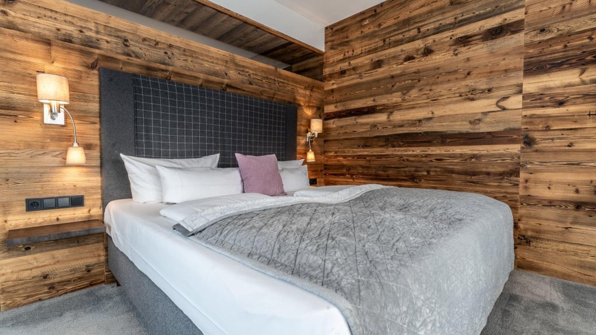 Unsere Zimmer „Silberdistel Deluxe“ überzeugen nicht nur durch die besonders charmante Gestaltung mit hochwertigen Naturprodukten wie Holz und Loden, sondern allen voran durch einen traumhaften Blick in die Berge vom Panoramabalkon. Gemütlich in der Nachmittagssonne relaxend, darf die Zeit ruhig stehen bleiben.