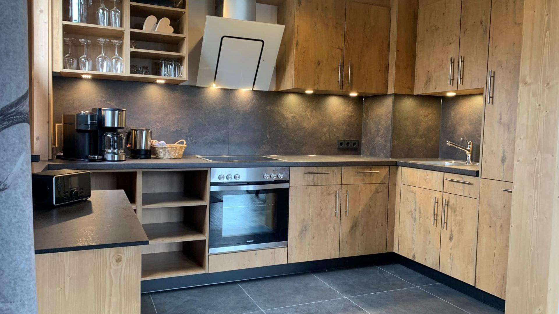 Die großzügig geschnittene und mit viel Liebe eingerichtete Ferienwohnung „Auerhuhn“ im nahegelegenen Landhaus bietet nicht nur jeglichen Komfort, sondern auch herrliche Ausblicke auf Wald + Fluh. Die gemütliche Couch, die offene Wohnküche und die natürlichen Materialien sowie der Holzboden sorgen für eine heimelige Atmosphäre.